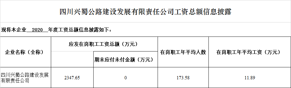 四川興蜀公路建設發(fā)展有限責任公司工資總額信息披露