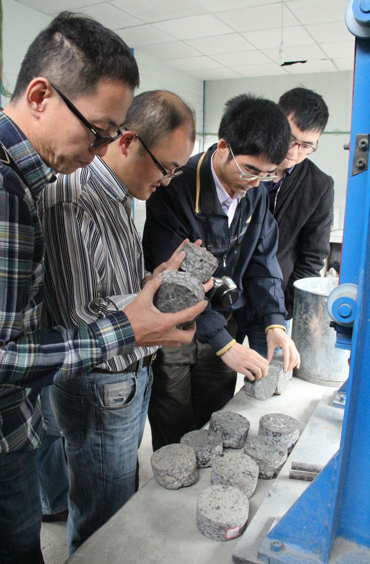 在現(xiàn)場查看瀝青路面拌和場時,專家組詳細(xì)檢查了原材料和工地試驗室。抽查了路面試驗鉆心樣品和實驗數(shù)據(jù),并與公司東海路雅紅代表處、監(jiān)理單位和各施工單位等相關(guān)人員就路面工程的瀝青原材、材料配比、攤鋪工藝、設(shè)備配置和質(zhì)量控制措施等方面進行了交流與探討,為進一步優(yōu)化施工方案、保證工程質(zhì)量提出了指導(dǎo)性建議和具體要求。
