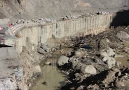TJ4標K223+320-K223+440段,由于河面較寬,設計擋墻與既有擋墻緊貼,施工中容易造成既有干砌片石擋墻的垮塌,不利于施工作業(yè)人員的安全,保通任務也很繁重。為此,香格里拉代表處要求將擋墻外移1米,擋墻頂面降低60公分,日后再將其以弧面形式回填種植土,種植花草、矮灌的設計。讓過往的游客看不到高大聳立的擋墻,減少了臨邊臨河的危險。將五顏六色的花帶引入公路旁,讓“游客行徑在鮮花叢中”是我們的夢想。