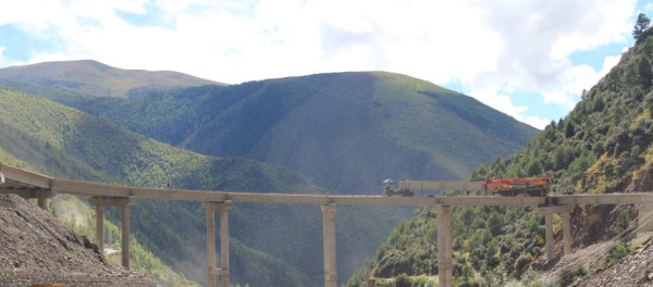 2013年9月8日下午6時(shí)6分,隨著D4合同段中古弄巴2號(hào)大橋最后一片T梁的安裝調(diào)整就位,宣告G318線東海路橋梁工程梁板安裝全部完成。