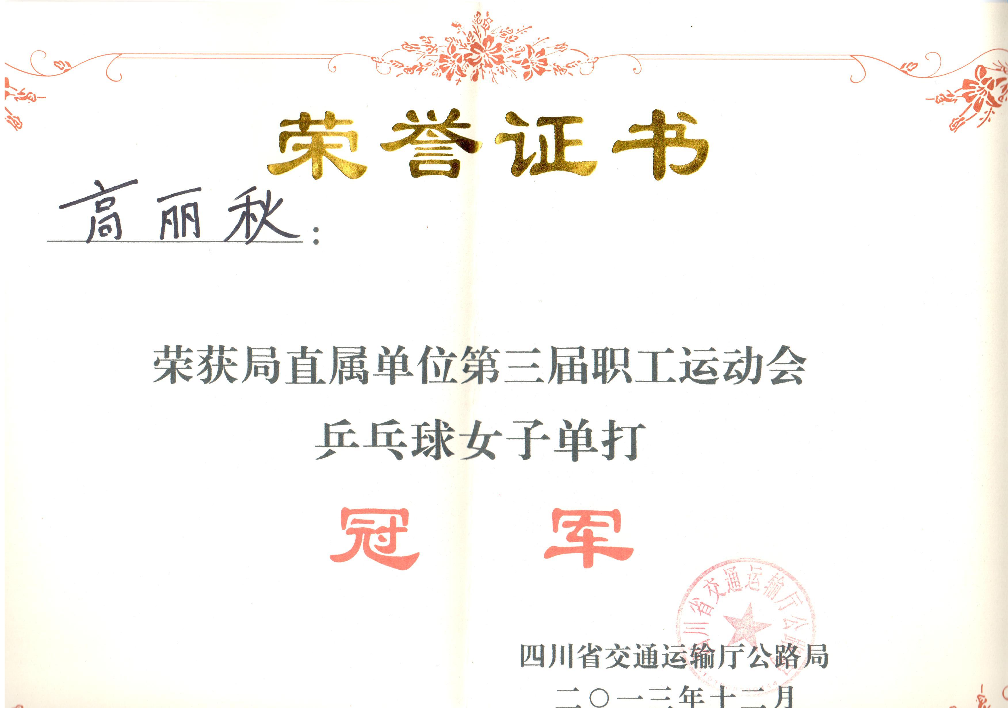 高麗秋喜獲“局直屬單位職工運動會”乒乓球單打冠軍