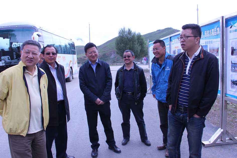2014年8月5日至8月6日,四川省交通運(yùn)輸廳鮮雄巡視員一行調(diào)研公司S217/216線理塘縣城至稻城亞丁段公路改建工程項(xiàng)目建設(shè)。甘孜州副州長汪洋,甘孜州交投公司董事長李王斌,興蜀公司總經(jīng)理柯勇、總工程師王屹、稻城縣縣委書記鄧立軍等陪同調(diào)研。