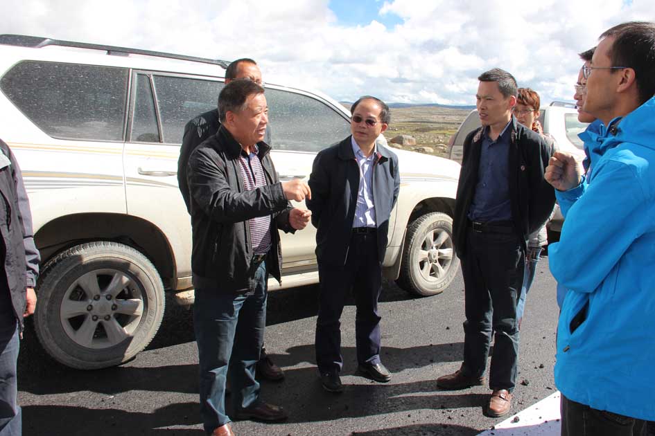 2014年8月28日至29日,四川省交通運(yùn)輸廳張琪副廳長(zhǎng)、廳公路局于天才副局長(zhǎng)一行調(diào)研公司甘孜州工程項(xiàng)目建設(shè),并看望慰問了奮戰(zhàn)在高原一線的建設(shè)職工。