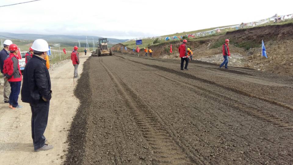 本次鋪筑路段選定在B合同段K101+460~K101+160段,全幅300米,施工工藝采用級(jí)配混合料集中拌合,平地機(jī)攤鋪、壓路機(jī)碾壓的方式進(jìn)行,施工時(shí)間約3個(gè)半小時(shí)。興蜀公司色達(dá)項(xiàng)目指揮部高度重視此次試驗(yàn)段鋪筑工作,鋪筑前進(jìn)行了溝通協(xié)調(diào),明確了職責(zé)分工,完善了機(jī)械設(shè)備配備、施工方案等。經(jīng)現(xiàn)現(xiàn)場(chǎng)對(duì)鋪筑高程、壓實(shí)度、橫坡等技術(shù)檢測(cè)后,各項(xiàng)指標(biāo)均達(dá)到設(shè)計(jì)要求。