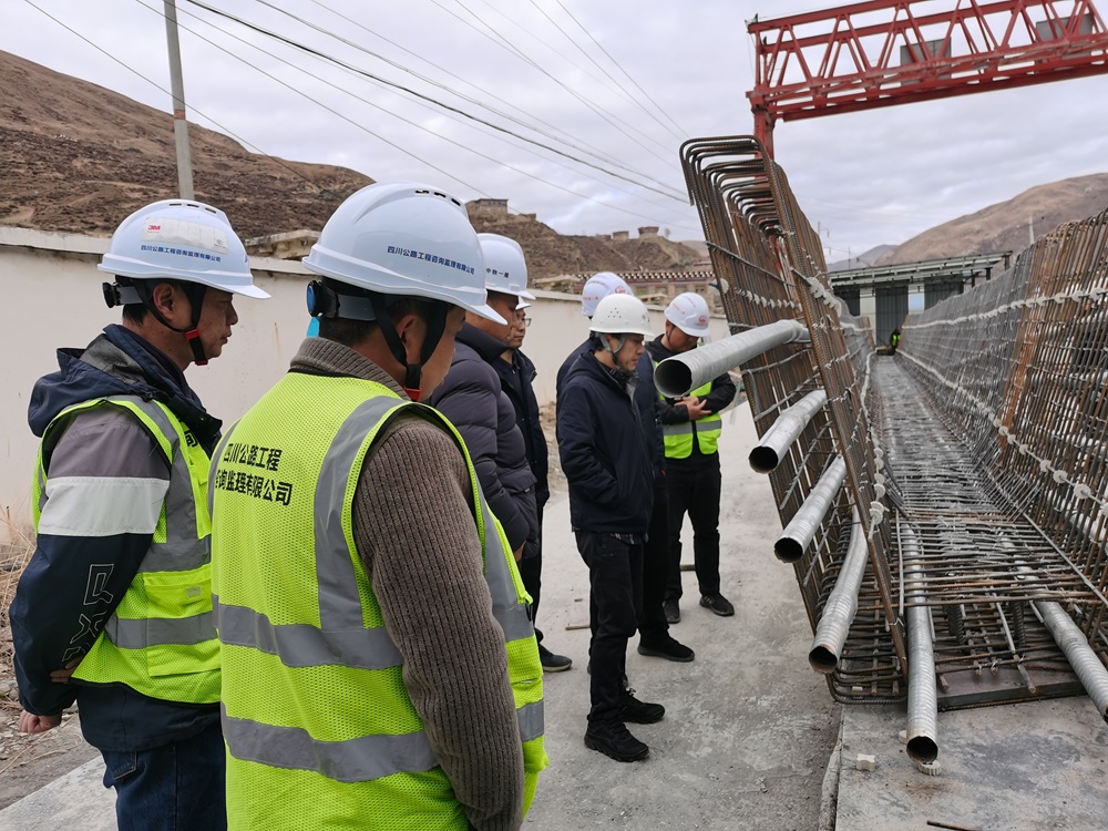 在色翁路檢查督導(dǎo)期間,潘華總經(jīng)理一行先后實(shí)地查看了甲根達(dá)2號中橋現(xiàn)澆梁、2號預(yù)制梁廠,新老路面擴(kuò)寬段、旭日隧道、曼堂古隧道、霍西隧道等項(xiàng)目控制性工程,聽取了各參建單位關(guān)于項(xiàng)目建設(shè)、用地要件辦理、技術(shù)保障及安全環(huán)保管理等方面的工作匯報(bào)。