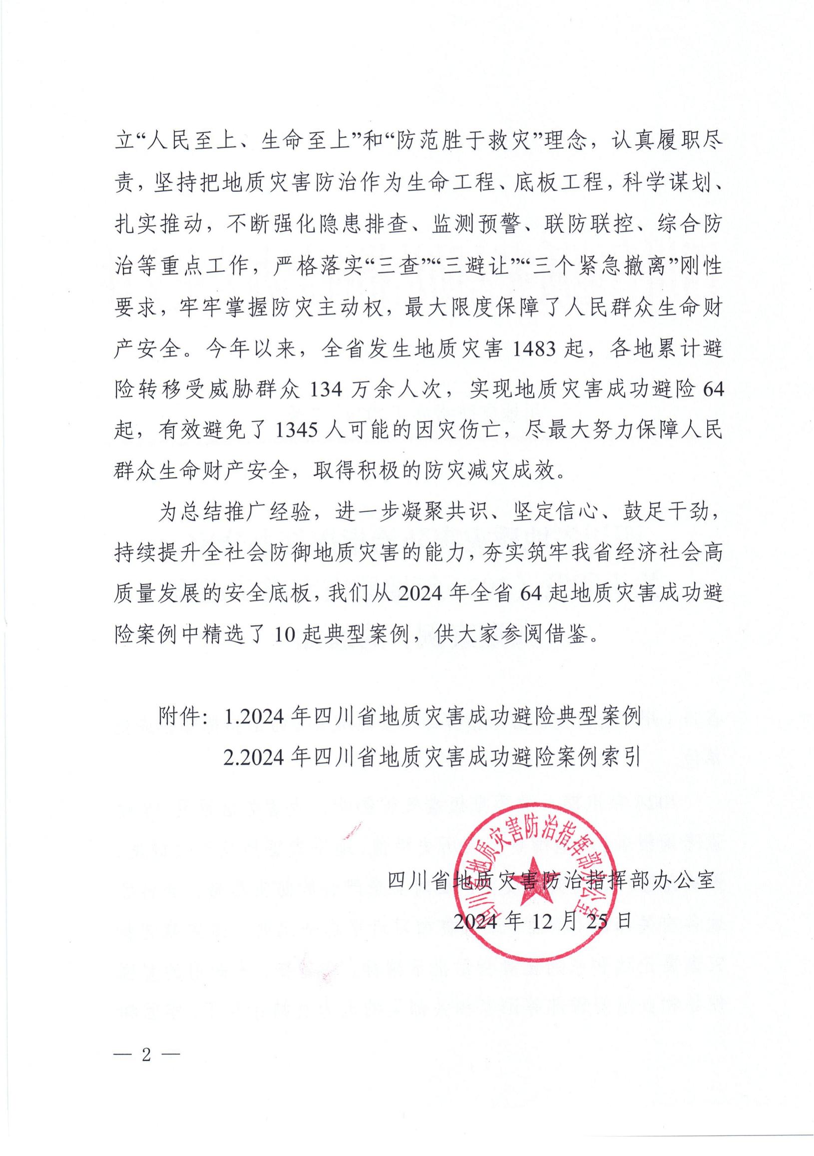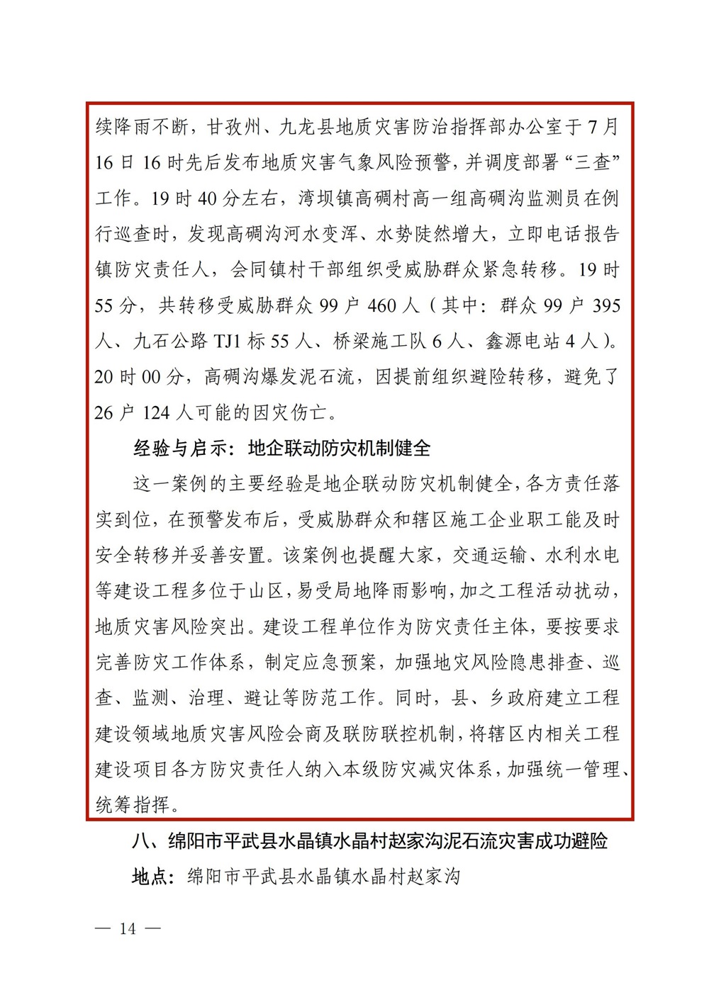 這一案例的主要經(jīng)驗是地企聯(lián)動防災(zāi)機制健全,各方責(zé)任落實到位,在預(yù)警發(fā)布后,受威脅群眾和轄區(qū)施工企業(yè)職工能及時安全轉(zhuǎn)移并妥善安置。該成功避險經(jīng)驗入選四川省地質(zhì)災(zāi)害防治指揮部《關(guān)于印發(fā)2024年地質(zhì)災(zāi)害成功避險典型案例》的通知(川地災(zāi)防指辦[2024]7號)。