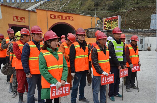 為提高全體參建人員的安全意識(shí),強(qiáng)化項(xiàng)目的安全應(yīng)急處置水平,2014年5月19日至20日,結(jié)合雪山梁隧道工程特點(diǎn),分別在隧道A、B標(biāo)段有針對(duì)性地開展了隧道關(guān)門坍塌,涌水、突泥等突發(fā)事件應(yīng)急演練。