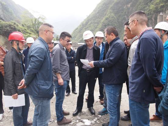 2016年4月18日,四川省交通運(yùn)輸廳質(zhì)監(jiān)局局長(zhǎng)曾宇與阿壩州交通運(yùn)輸局總工程師詹永康一行督查興蜀公司S303線(xiàn)映臥路汛期安全管理工作。興蜀公司總經(jīng)理柯勇、副總經(jīng)理袁泉陪同檢查。