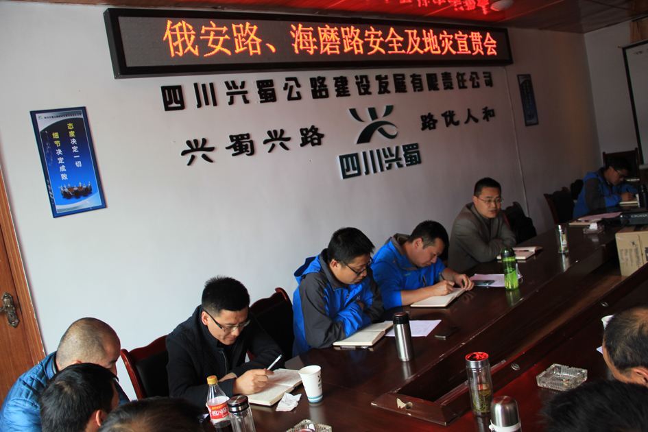 2016年5月18日至20日,興蜀公司安全部會(huì)同俄安路、海磨路、亞赤路指揮部對(duì)在建項(xiàng)目汛期生產(chǎn)安全及地質(zhì)災(zāi)害排查落實(shí)情況進(jìn)行了專項(xiàng)檢查,并在俄安路指揮部召開了安全知識(shí)教育及地質(zhì)災(zāi)害預(yù)防宣貫會(huì)。