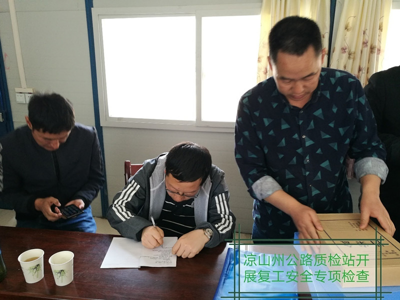 今年是施工最后的沖刺階段,興蜀公司涼山溜索改橋指揮部為確保6月順利完工,春節(jié)后迅速組織人員進場,并成立了復工安全檢查領導小組,認真組織開展復工前的安全生產檢查,確保復工安全作業(yè)。重點檢查:項目安全生產準入條件及費用落實情況、危險性較大工程專項施工方案及安全技術交底情況、現(xiàn)場安全隱患排查、應急預案情況、工程實體高墩、大型模板支架等危險性較大工程的施工準備情況、機械設備檢測驗收及三類人員、特種作業(yè)人員持證上崗情況。