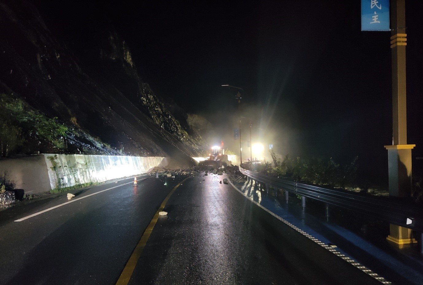 2021年9月27日晚22時(shí)40分,九寨溝境內(nèi)持續(xù)降雨導(dǎo)致川九路沿線多處落石和K13上邊坡垮塌造成道路中斷,興蜀公司川九路指揮部第一時(shí)間啟動(dòng)路警聯(lián)勤聯(lián)動(dòng)機(jī)制,設(shè)置警戒線封閉道路,按照應(yīng)急保通預(yù)案,組織參建單位人員和機(jī)械設(shè)備至現(xiàn)場(chǎng),進(jìn)行應(yīng)急搶險(xiǎn)保通工作。在夜間降雨持續(xù)且上邊坡仍在落石的情況下,指揮部堅(jiān)決落實(shí)“七不搶”要求“三個(gè)避讓”原則,對(duì)垮方處險(xiǎn)情進(jìn)行正確預(yù)判,在降雨停止后,連續(xù)觀測(cè)未見落石,確保搶險(xiǎn)保通人員機(jī)械設(shè)備安全的情況下,組織機(jī)械從兩頭進(jìn)行搶險(xiǎn)保通,經(jīng)過1個(gè)小時(shí)作業(yè),垮塌斷道處終于順利搶通,滯留車輛全部放行。