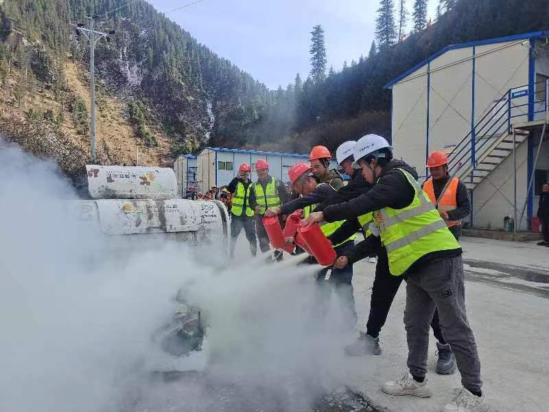 項(xiàng)目部安全管理人員講解了火災(zāi)隱患、防止火災(zāi)的注意事項(xiàng)、滅火器的使用方法。演練模擬火災(zāi)場景發(fā)生后,各應(yīng)急小組迅速出動(dòng),火災(zāi)警報(bào)響起,駐地人員按照預(yù)定撤離路線,有序從各個(gè)應(yīng)急通道疏散到指定的安全區(qū)域,秩序井然,未發(fā)生任何混亂。滅火組在模擬火源處進(jìn)行滅火實(shí)戰(zhàn)演練,員工們輪流使用干粉滅火器,按照“拔、握、瞄、掃”的步驟,成功將火源撲滅。通過實(shí)際操作,員工們掌握了滅火器的正確使用方法。