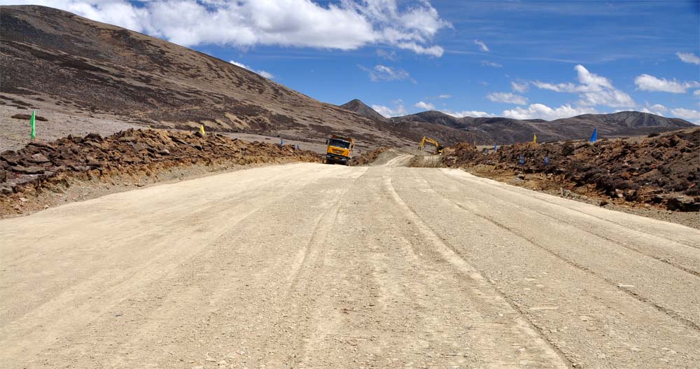 興蜀公司亞赤路改建工程S 1標(biāo)段于2014年5月15日在海拔4600米無(wú)名山順利完成了路基填方試驗(yàn)段的施工鋪筑。