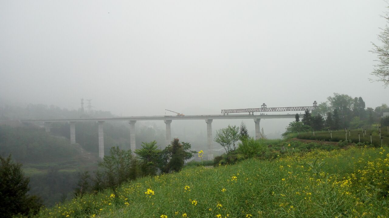 靈關(guān)河1#大橋跨越山間谷地,地勢(shì)起伏高,上部結(jié)構(gòu)為9×40米預(yù)應(yīng)力混凝土T梁,墩柱設(shè)計(jì)為空心薄壁變截面墩,其中最高墩柱,距離地面凈空高達(dá)78米。興蜀公司G351線建設(shè)指揮部和各參建單位通過優(yōu)化施工方案,調(diào)整施工工藝,精心組織管理,努力克服施工難度系數(shù)大,安全風(fēng)險(xiǎn)嚴(yán)峻,征拆困難等不利因數(shù),在保證大橋安全架設(shè)的前提下,實(shí)現(xiàn)了靈關(guān)河1#大橋的順利架通。