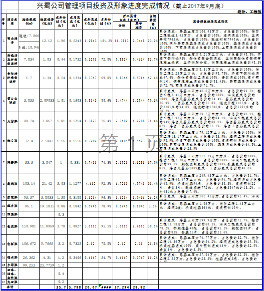 興蜀公司管理項(xiàng)目投資及形象進(jìn)度完成情況(截止2017年9月底)