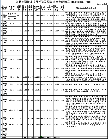 興蜀公司管理項目投資及形象進度完成情況(截止2017年11月底)