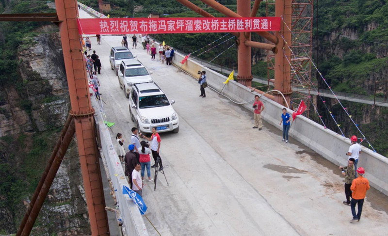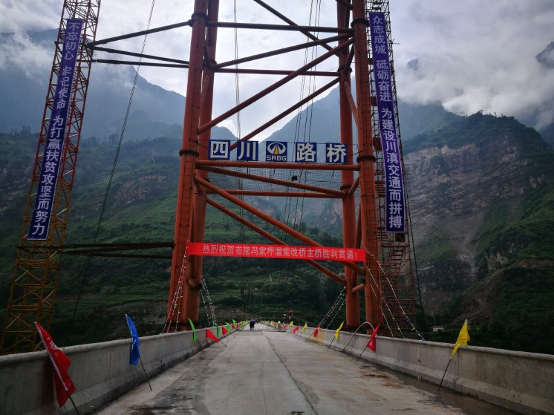 2018年7月10日,在新華社、四川電視臺(tái)等多家主流媒體的共同關(guān)注和川滇兩地人民的共同見證下,多輛汽車駛?cè)氪髽颍坏?分鐘即到達(dá)對(duì)面云南岸,標(biāo)志著布拖金沙江溜索改橋主橋正式貫通,具備通車能力。