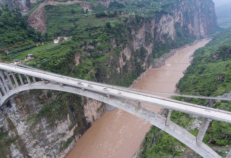 布拖馮家坪村溜索改橋全長(zhǎng)385.2米,主孔凈跨260米,為四川省第五大跨徑拱橋。自2016年1月13日開工建設(shè)以來,興蜀公司溜索改橋指揮部帶領(lǐng)各參建單位克服自然條件惡劣、原材料緊缺、運(yùn)輸難、高空作業(yè)等多重難題,經(jīng)過1000多名建設(shè)者近900天的艱苦奮戰(zhàn),終于如期實(shí)現(xiàn)大橋通車目標(biāo)。四川和云南岸的引道預(yù)計(jì)明年建成,屆時(shí)四川77個(gè)“溜索改橋”建設(shè)項(xiàng)目將全部完成建設(shè),徹底結(jié)束四川的“溜索時(shí)代”。