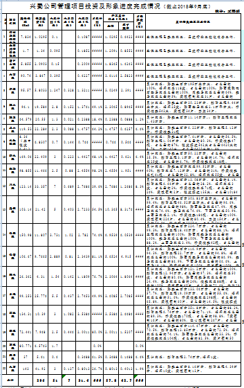 興蜀公司管理項目投資及形象進度完成情況(截至2018年9月底)