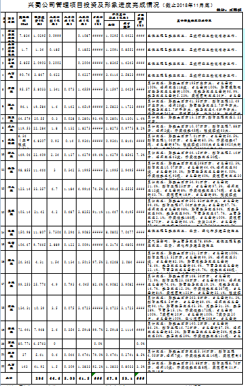 興蜀公司管理項目投資及形象進(jìn)度完成情況(截止2018年11月底)