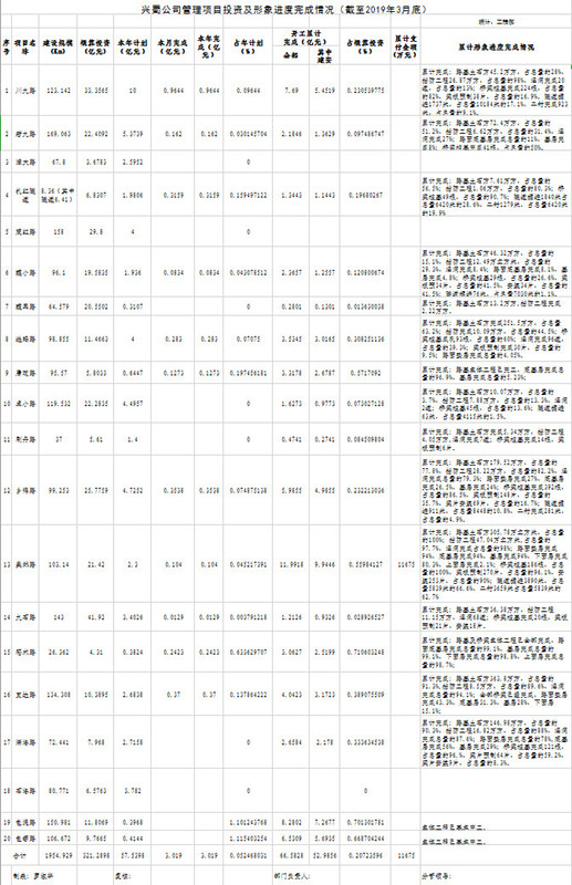 興蜀公司管理項目投資及形象進度完成情況(截至2019年3月底)