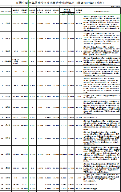 興蜀公司管理項(xiàng)目投資及形象進(jìn)度完成情況(截至2019年11月底)