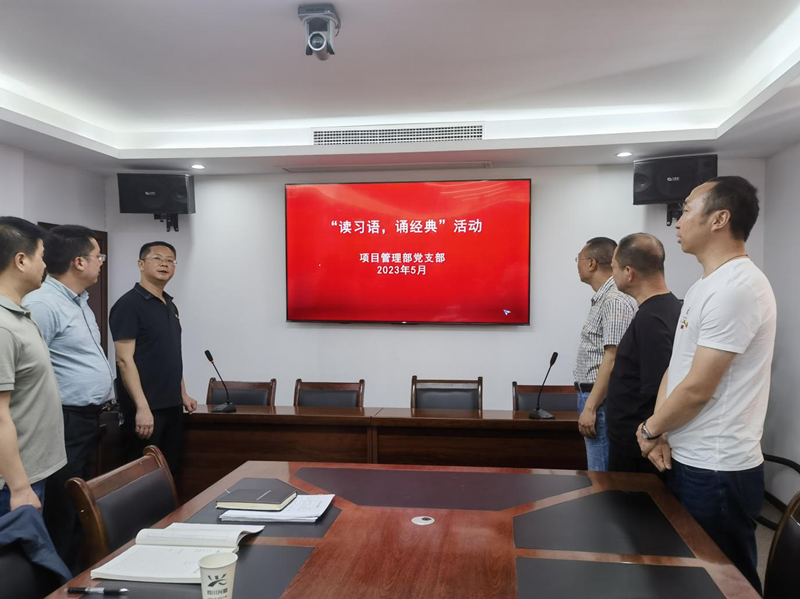 為深入學(xué)習(xí)貫徹習(xí)近平新時(shí)代中國(guó)特色社會(huì)主義思想,結(jié)合主題教育活動(dòng),牢記習(xí)近平總書記對(duì)當(dāng)代青年的殷切囑托,教育引導(dǎo)黨員干部感悟?yàn)槊袂閼?、發(fā)揚(yáng)革命精神,激發(fā)干事創(chuàng)業(yè)熱情,勇?lián)鷷r(shí)代使命,5月12日,項(xiàng)目管理部黨支部組織支部黨員在公司開展“讀習(xí)語(yǔ)、誦經(jīng)典”誦讀活動(dòng)。