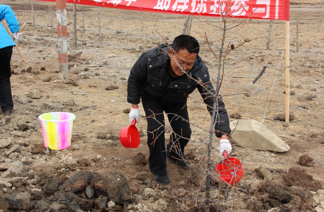 活動(dòng)開始后,理亞路常務(wù)副指揮長王屹同志帶領(lǐng)全體黨員在“保護(hù)高原生態(tài),從我做起”的橫幅前宣誓并簽名。雖然植樹現(xiàn)場寒風(fēng)凜冽,但這并沒有影響到大家“植樹造林,美化家園”的熱情。參加植樹的同志們干得熱火朝天,揮鎬掄鍬,扛樹挖坑,栽種樹苗并培土澆水。