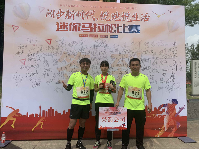 5月14日,為慶祝新中國成立70周年,由廳直機(jī)關(guān)黨委、交通運輸工會主辦,交通設(shè)計院公司承辦的2019年四川省交通運輸廳“闊步新時代,悅跑悅生活”迷你馬拉松活動在錦城湖4號湖順利舉行。廳機(jī)關(guān)、廳直單位共25支隊伍近兩百名選手參加了本次迷你馬拉松賽??籽鹞?,郝道明,胡許勇三名同志代表公司參賽,展現(xiàn)出了興蜀員工的頑強拼搏,奮勇爭先的精神面貌,孔佯微同志獲得女子組三等獎(第6名)。